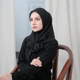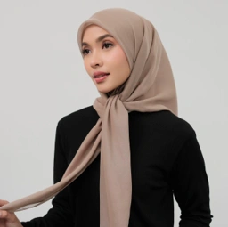 Look nya juga super mewah karena menggunakan Gold Plat Logo di bagian ujung hijab
