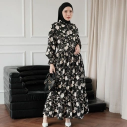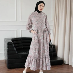 NHS Raya Part 1, kalo yang ini dress semi casual yang looknya ga hanya formal tapi bisa kepakai nanti setelah raya. Dress cantik berbahan cotton crincle yang ringan nyaman dan antik kusut. Ada aksen kancing bungkus yang bikin look dress ini mewah dan elegant