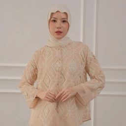 *note : disarankan untuk mengenakan manset atau atasan lengan panjang, mengingat bagian pada blouse tidak sepenuhnya tertutup oleh motif.